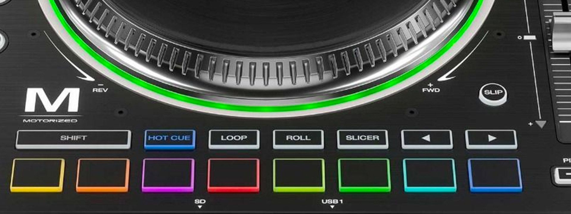 While the pads being immediately under the platter is fairly standard for most controllers, when using spinning platters, the placement feels a little more clumsy. Unlike static platters that have a digital position indicator that automatically resets the position when hitting a cue, using spinning platters generally requires two hands – one to centre the sticker at the desired location, and the other to press the pad.