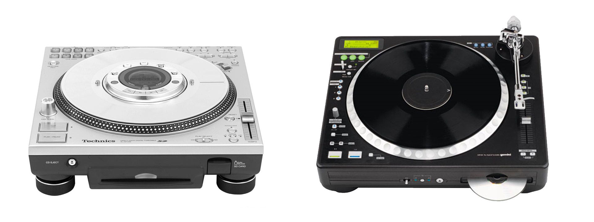 There was a small explosion of turntable/CDJ hybrids in the late 00s / early 10s (like Technics’ SL-DZ1200s, Numark’s CDX/HDX, Gemini’s CDT-05, or the Denon SC3700/3900/DN-S5000), none of them really caught on with the general public for a variety of reasons.